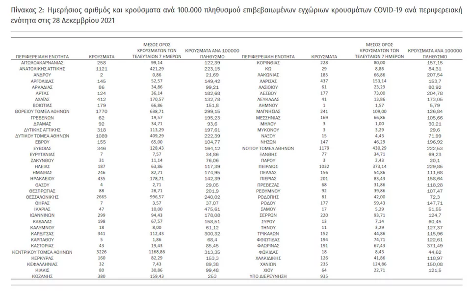 Αναλυτικά η κατανομή των κρουσμάτων ανά Περιφερειακή Ενότητα: