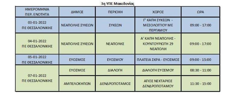 Στη Διαλογή και στον Δενδροπόταμο, στη Θεσσαλονίκη, θα βρίσκονται σήμερα κινητές μονάδες εμβολιασμού κατά της COVID-19 από την 3η ΥΠΕ.
