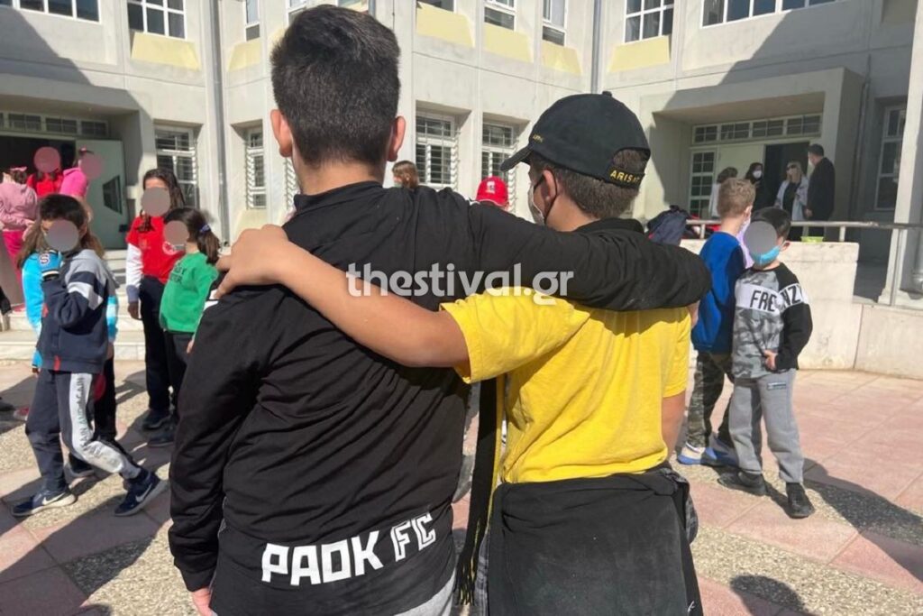 Μαθητές των τεσσάρων μεγαλύτερων τάξεων του δημοτικού φόρεσαν την φανέλα της αγαπημένης τους ομάδας και φωτογραφήθηκαν αγκαλιά.