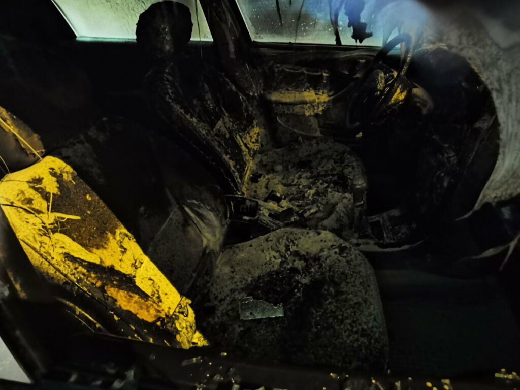 Στις εικόνες που παρουσιάζει το protothema.gr, διακρίνονται τα σπασμένα τζάμια και τα καμένα καθίσματα των τριών οχημάτων της Ελληνικής Αστυνομίας, ενός περιπολικού και δύο συμβατικών, τα οποία υπέστησαν φθορές από τη φωτιά που προκλήθηκε.
