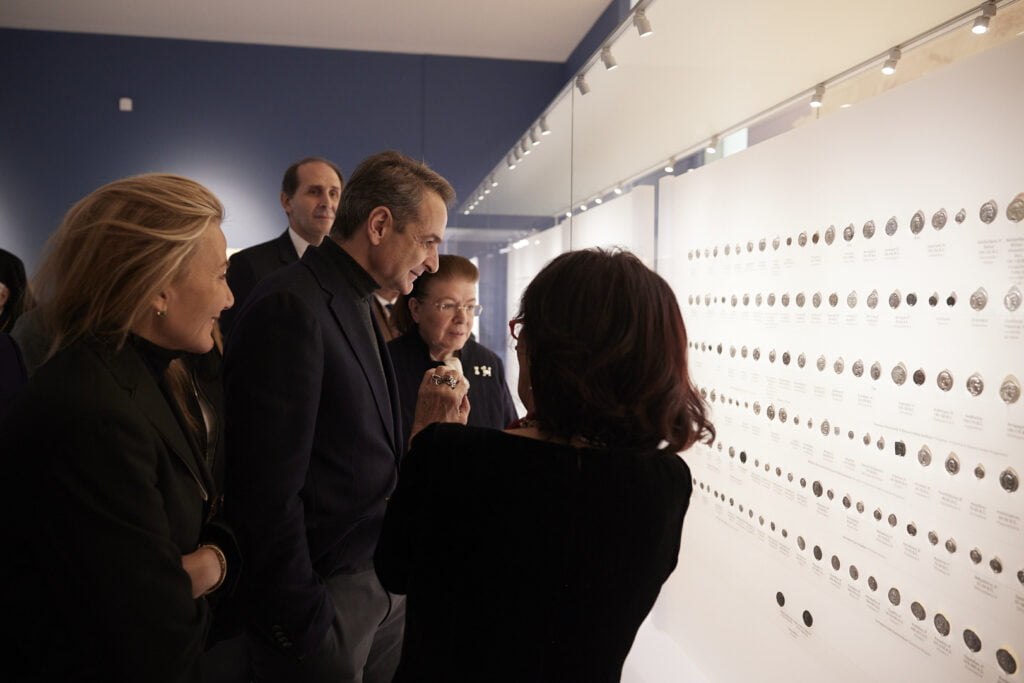 Στη συνέχεια, ο πρωθυπουργός συνοδευόμενος από τη σύζυγό του Μαρέβα Γκραμπόφσκι-Μητσοτάκη, ξεναγήθηκε στα εκθέματα του νέου Μουσείου Αιγών από την Υπουργό Πολιτισμού και Αθλητισμού, Λίνα Μενδώνη και την κυρία Αγγελική Κοτταρίδη.