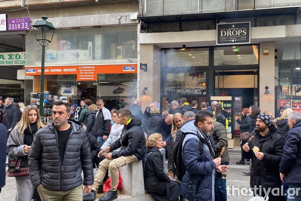 Χιλιάδες πολίτες έχουν κατακλύσει το κέντρο της Θεσσαλονίκης. Οι ταβέρνες στην οδό Βασιλέως Ηρακλείου όπως κάθε χρόνο τέτοια μέρα, έτσι και φέτος, είναι ασφυκτικά γεμάτες και οι παραγγελίες δεν σταματούν.