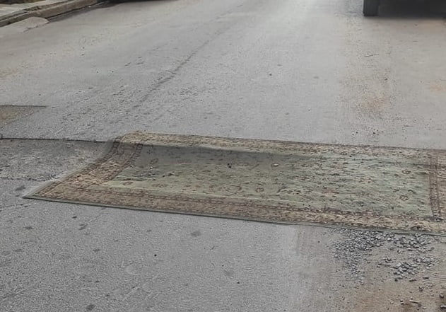 Κάτοικοι της Αλεξανδρούπολης σκέφτηκαν να απλώσουν ένα χαλί σε μία από τις εκατοντάδες λακκούβες της πόλης, μήπως και καταφέρουν να προστατεύσουν τα οχήματά τους, τα οποία δοκιμάζονται σε καθημερινή βάση από την απαράδεκτη κατάσταση στην οποία βρίσκονται πολλοί δρόμοι στο κέντρο και σε γειτονιές.