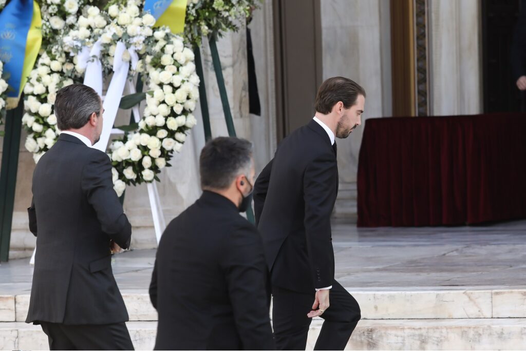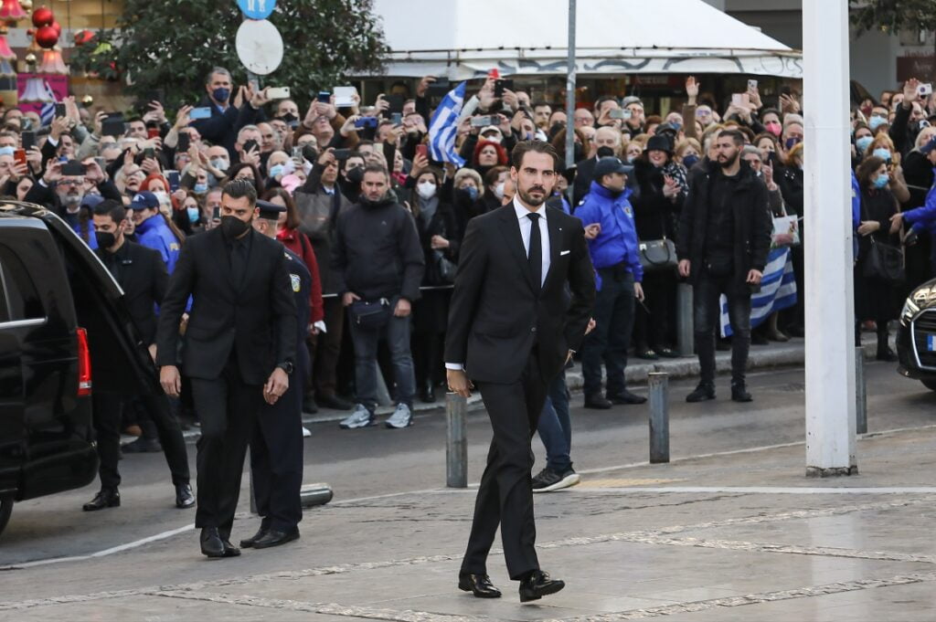 Λίγο πριν τις 11 το πρωί στην Μητρόπολη έφτασαν οι γιοι του τέως βασιλιά, Παύλος, Φίλιππος και Νικόλαος οι οποίοι έγιναν δεκτοί με χειροκροτήματα ενώ με τη σειρά τους χαιρέτησαν τα πλήθη.