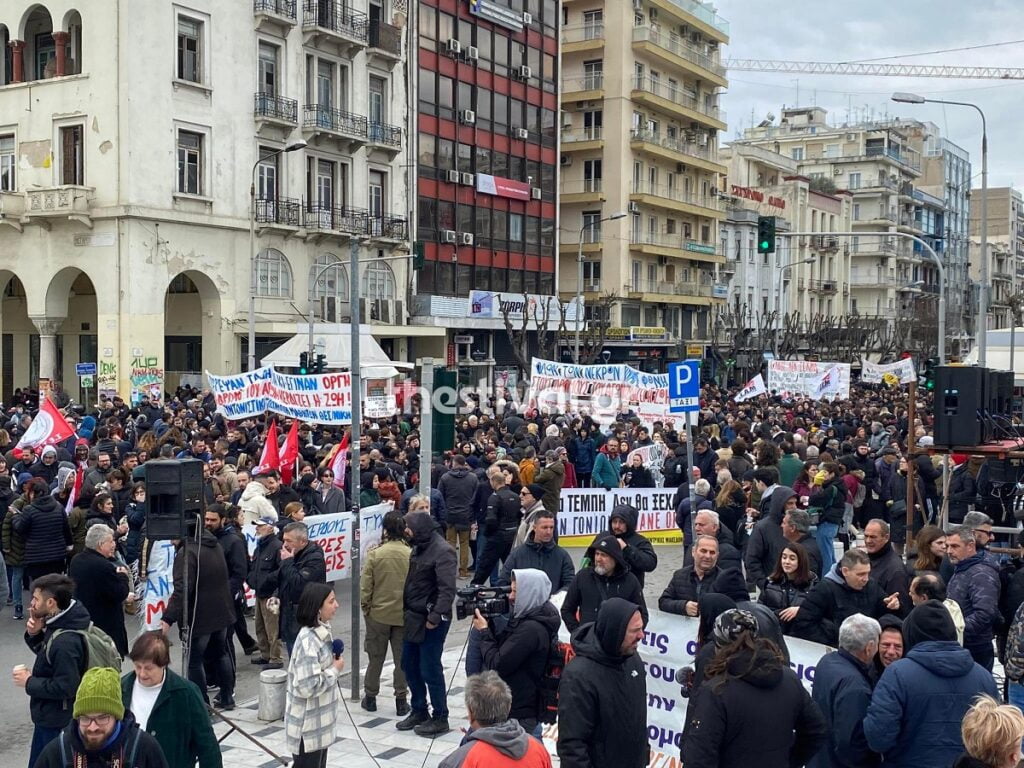 Θεσσαλονίκη: “Το έγκλημα δεν θα ξεχαστεί” – Μεγάλη συγκέντρωση για το δυστύχημα στα Τέμπη