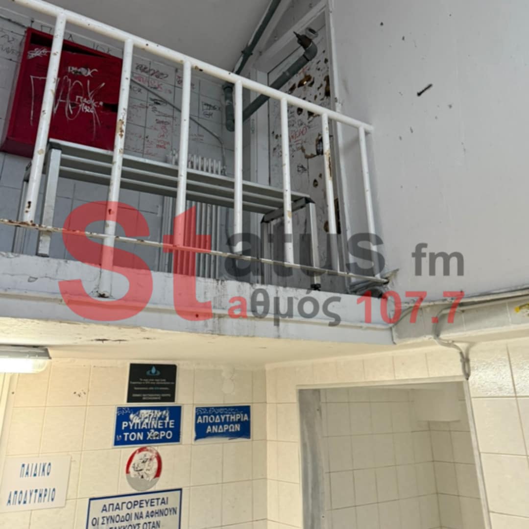 Οι χώροι όπου αλλάζουν μικροί και μεγάλοι αθλητές είναι κοινοί, με πόρτες που δεν κλείνουν, σπασμένα τζάμια και βρώμικους νιπτήρες και ντουζιέρες.