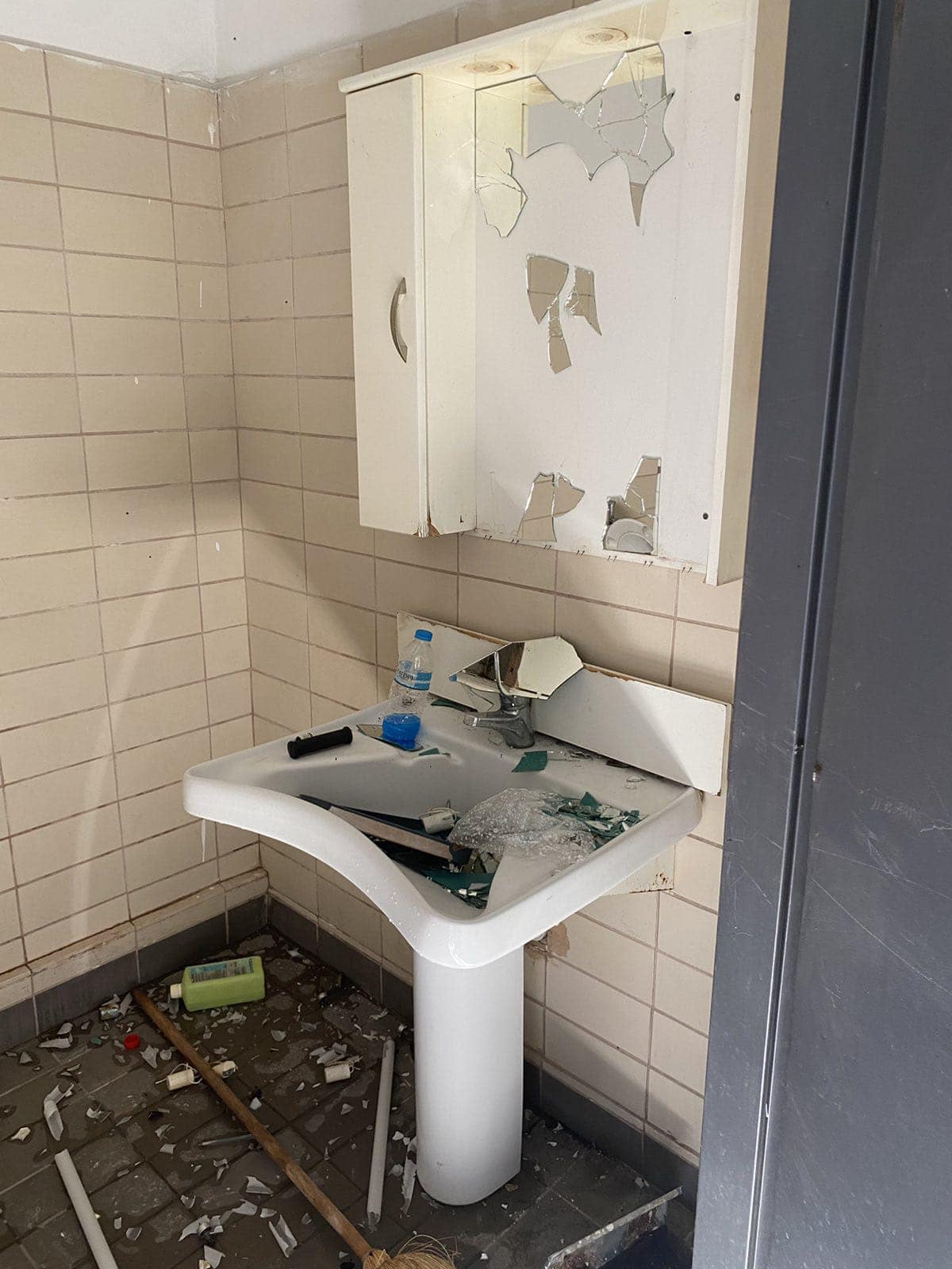 Σύμφωνα με πληροφορίες, άγνωστοι μπήκαν στις γυναικείες τουαλέτες και έσπασαν φωτιστικά, εξαερισμούς, καθρέφτες και πλακάκια από τον χώρο.