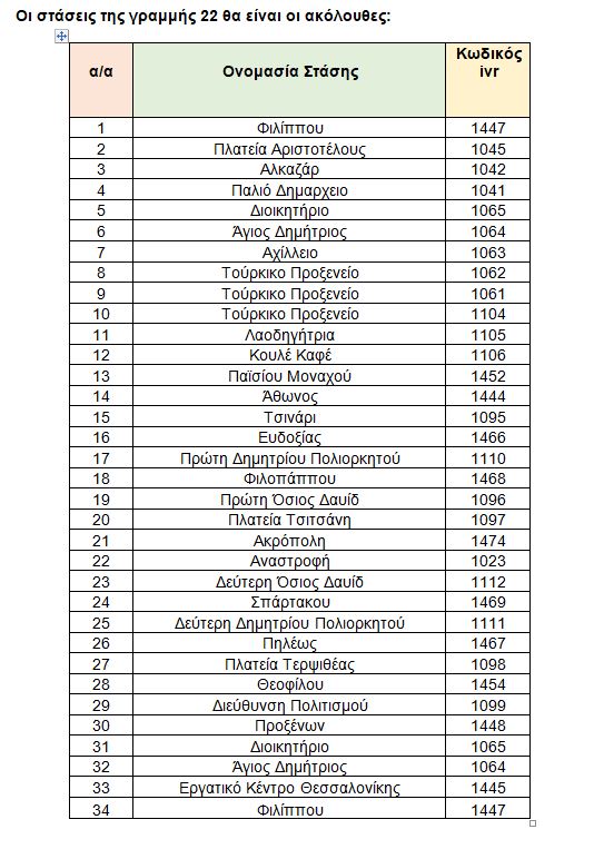 «Η τροποποίηση στη λειτουργία της γραμμής 22 γίνεται έπειτα από συνεργασία των υπηρεσιών του ΟΑΣΘ με τον Δήμο Θεσσαλονίκης και κατόπιν σχετικής έγκρισης από τον ΟΣΕΘ. Στοχεύει στη βελτίωση της εξυπηρέτησης του επιβατικού κοινού, έχει πιλοτικό χαρακτήρα και, εφόσον χρειαστεί, θα γίνουν περαιτέρω τροποποιήσεις», σημειώνει στην ανακοίνωσή του ο ΟΑΣΘ.