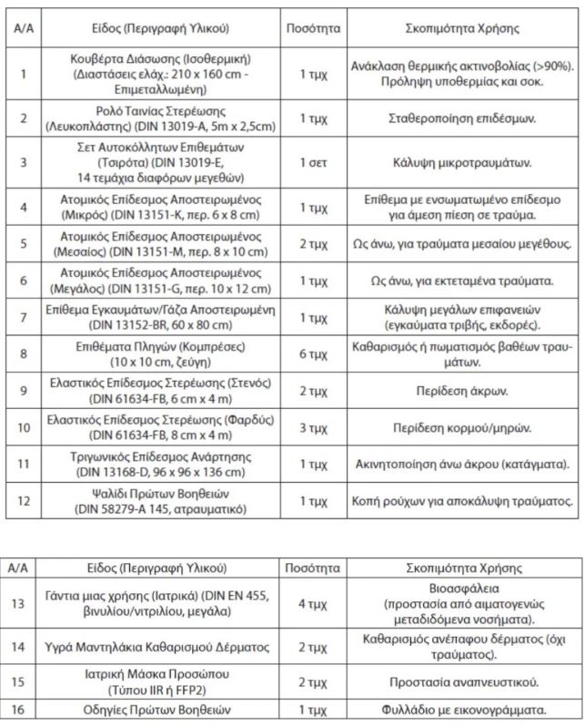 Με απόφαση του υπουργού Μεταφορών και Υποδομών, Κωνσταντίνου Κυρανάκη, όμως, 50 χρόνια μετά την πρώτη εκείνη απόφαση, οι οδηγοί καλούνται να αναπροσαρμόσουν το φαρμακείο τους, ώστε να είναι έτοιμοι σε περίπτωση τροχαίου ατυχήματος ή έκτακτης ανάγκης στον δρόμο.