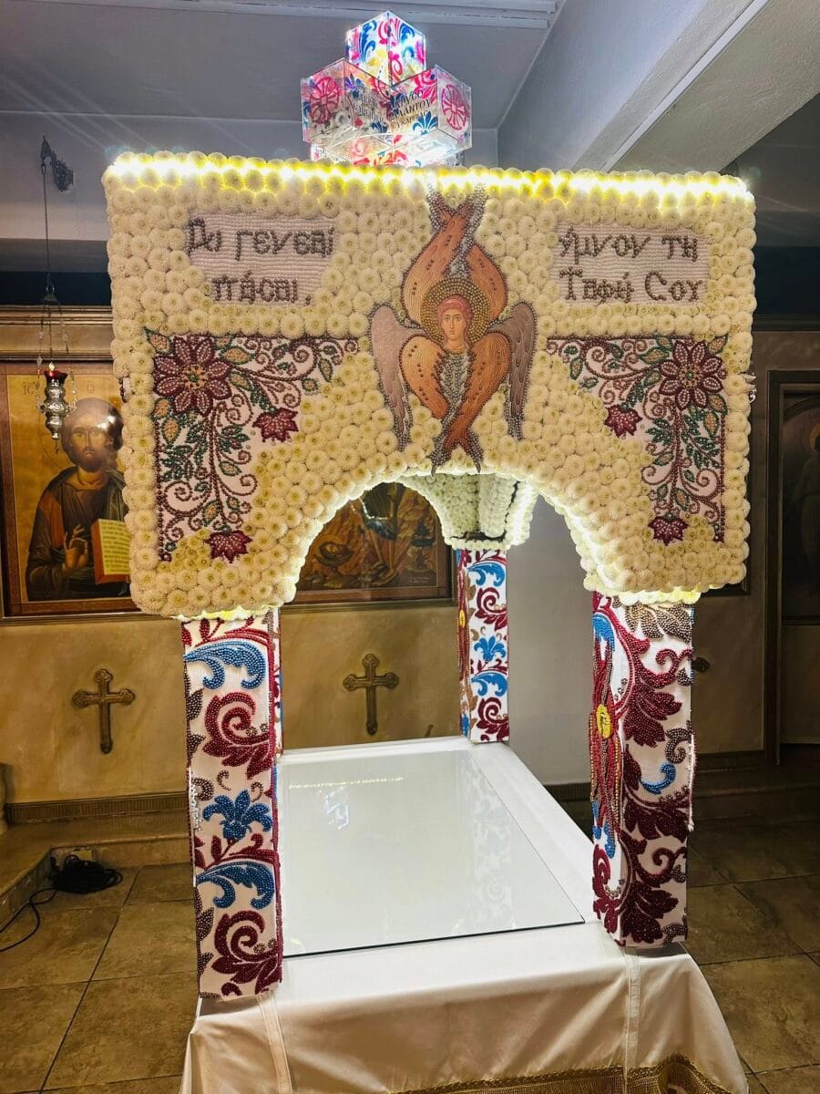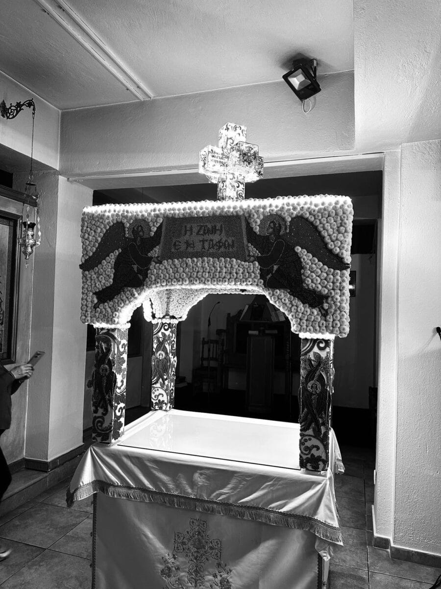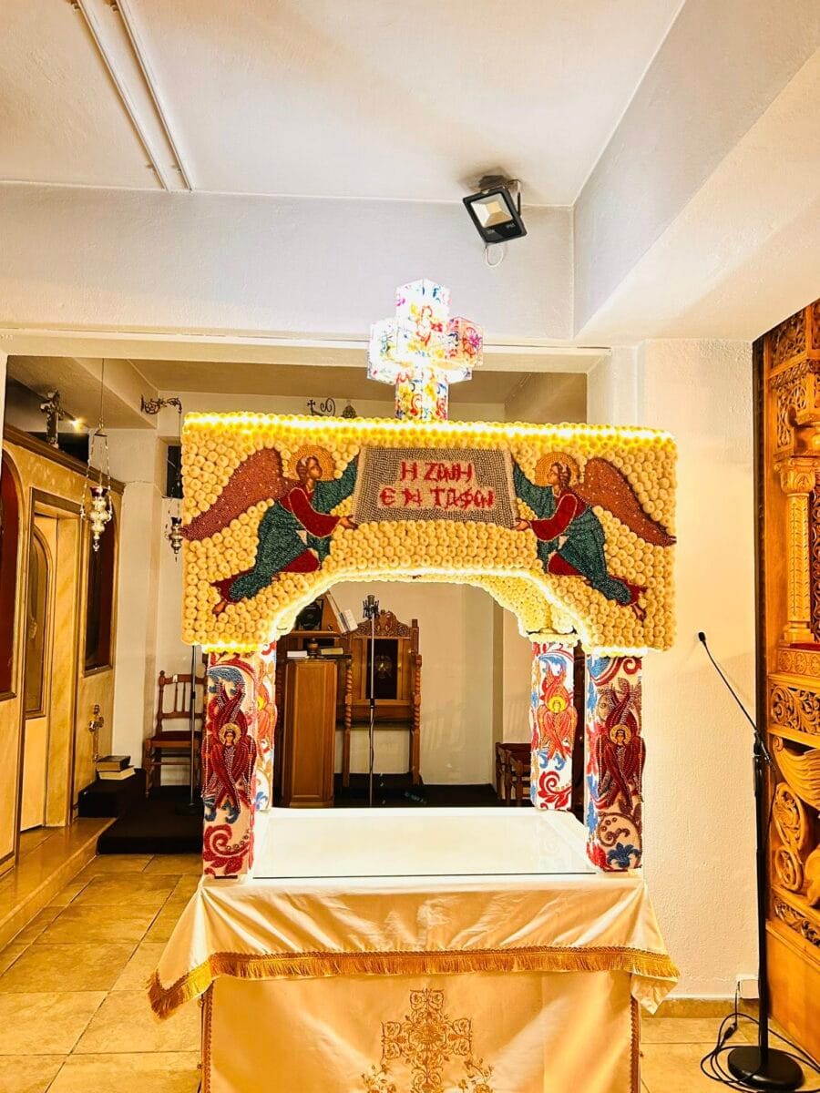 Το κουβούκλιο του Επιταφίου στολίστηκε με χιλιάδες πέρλες και άνθη, με τον στολισμό να ολοκληρώνεται τα ξημερώματα της Μεγάλης Παρασκευής. Πιστοί και πιστές αφιέρωσαν αφιέρωσαν αρκετές ώρες από τον προσωπικό τους χρόνο για να παρουσιάσουν αυτό τι άρτιο αποτέλεσμα.