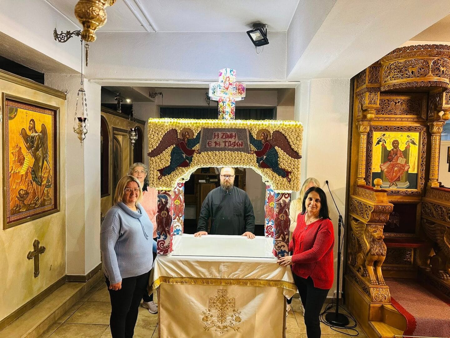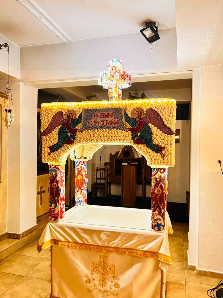 Ο στολισμός του Επιταφίου στον συγκεκριμένο Ιερό Ναό δεν έγινε μέσα σε μία νύχτα. Χρειάστηκαν δύο μήνες προετοιμασίας για την ολοκλήρωση του στολισμού.