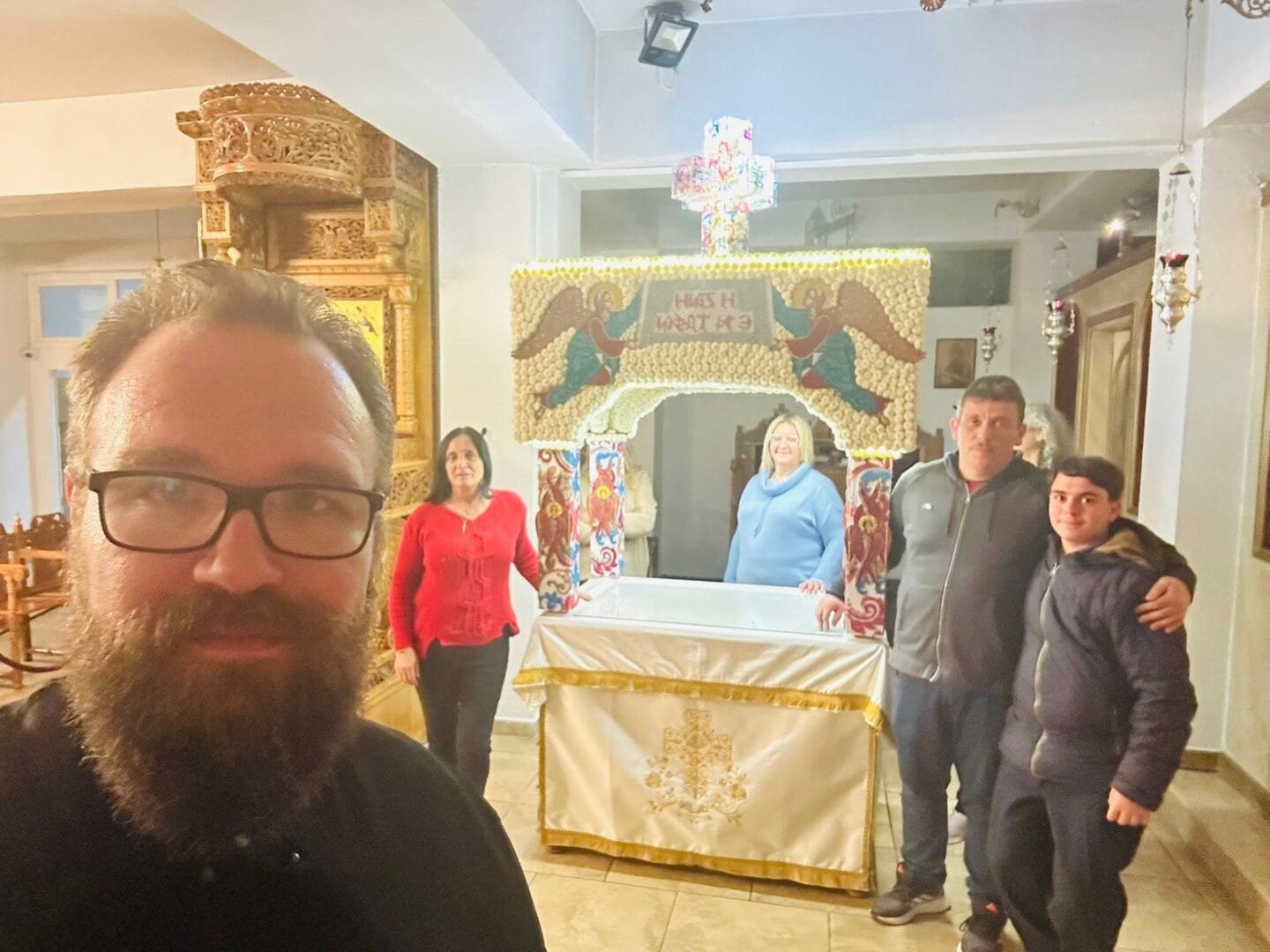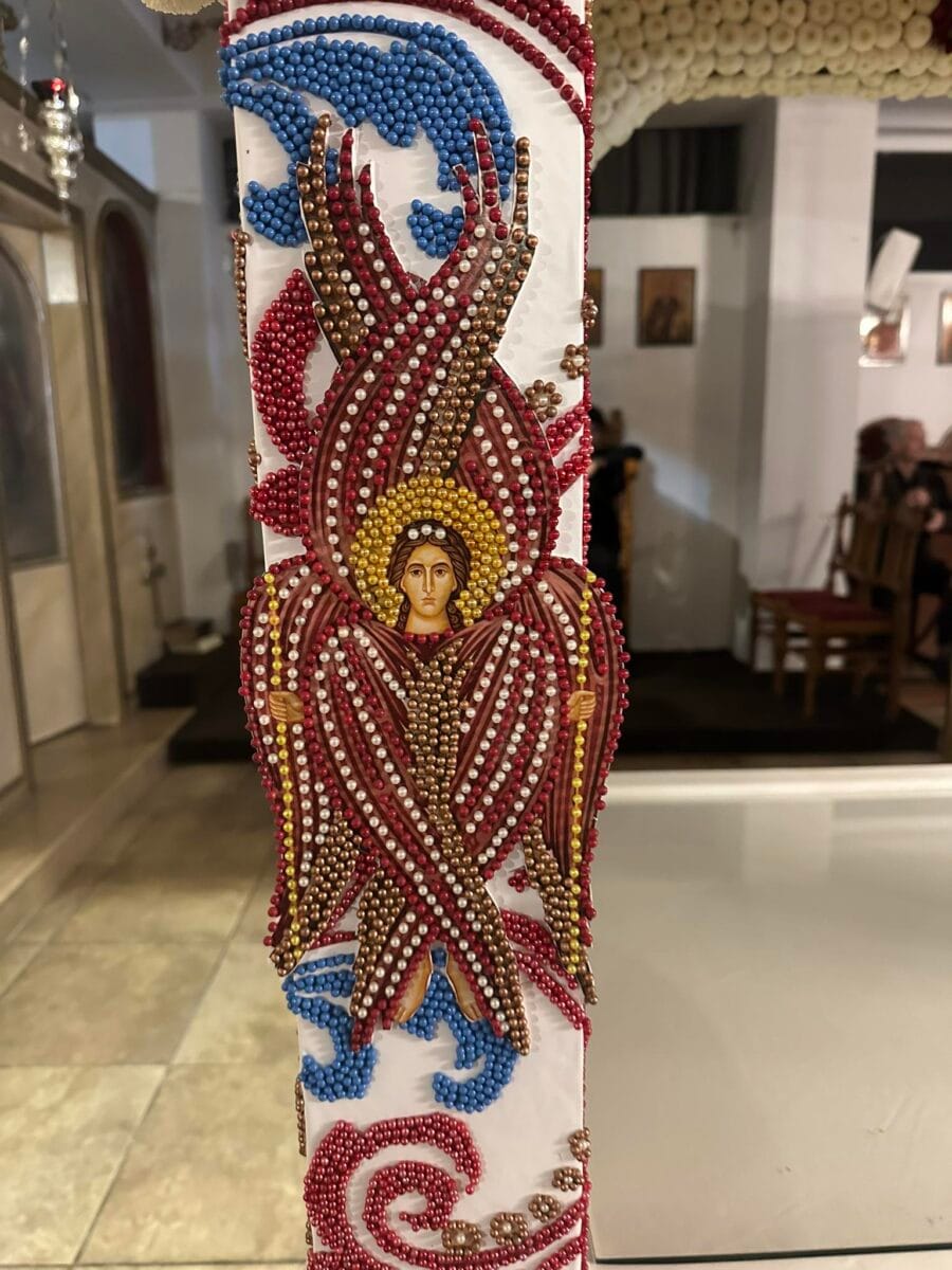 “Ο ιδιαίτερος στολισμός με τις πέρλες, μέσα στην εκκλησιαστική συμβολική, παραπέμπουν στο «πολύτιμον μαργαρίτην» του Ευαγγελίου, δηλαδή τον ίδιο τον Χριστό, αλλά και στην καθαρότητα της ψυχής που καλείται να Τον υποδεχθεί. . Κάθε μικρή λεπτομέρεια μαρτυρεί μια σιωπηλή προσφορά πίστης, μετατρέποντας τον Επιτάφιο σε ζωντανή έκφραση αγάπης προς τον Εσταυρωμένο και Ταφέντα Κύριο”, αναφέρει επίσης ο ιερέας.